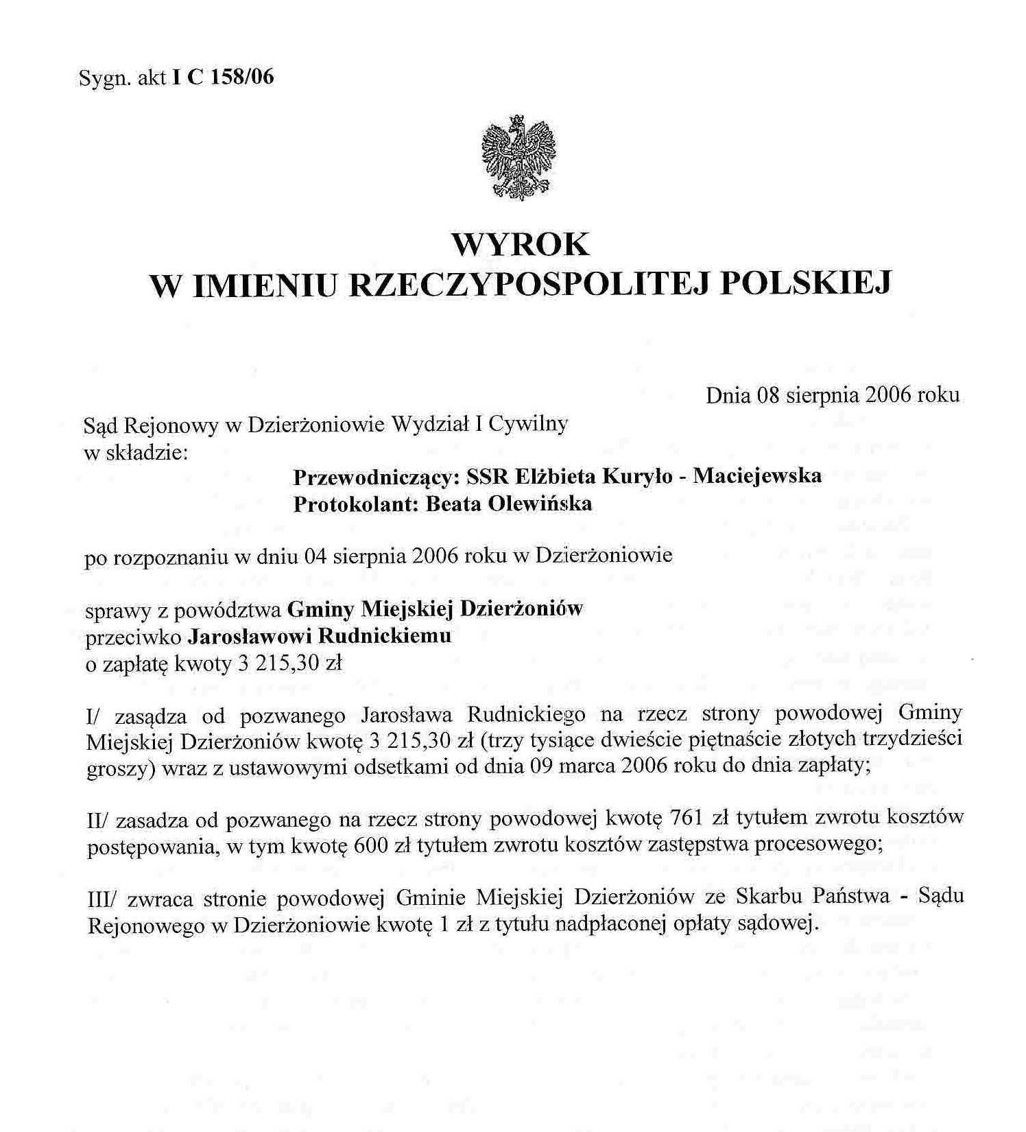 Sąd skazał na osiem miesięcy w zawieszeniu na dwa lata neurochirurga szpitala w Wałbrzychu, gdyż ten odesłał pacjenta z ciężkim urazem głowy do Dzierżoniowa. Wyrok usłyszał też były dyrektor szpitala w Dzierżoniowie. Został skazany na rok więzienia w zawieszeniu na dwa lata. Tam podczas operacji zgasło światło, a agregat prądu nie zadziałał. Lekarze w ciemnościach walczyli o życie pacjenta. Oświetlali pacjenta latarkami z telefonów komórkowych. Światła nie było przez kilkanaście minut. Minut, które dla operujących lekarzy były wiecznością.